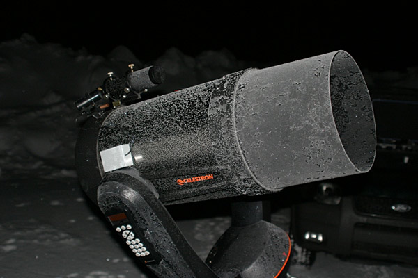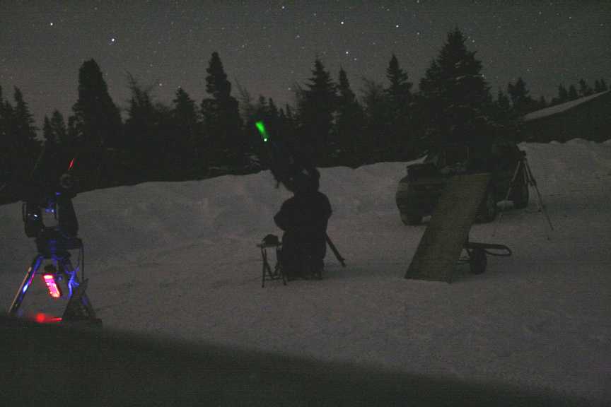 Robert Babb laser-targetting his 'scope in -15C conditions, by starlight