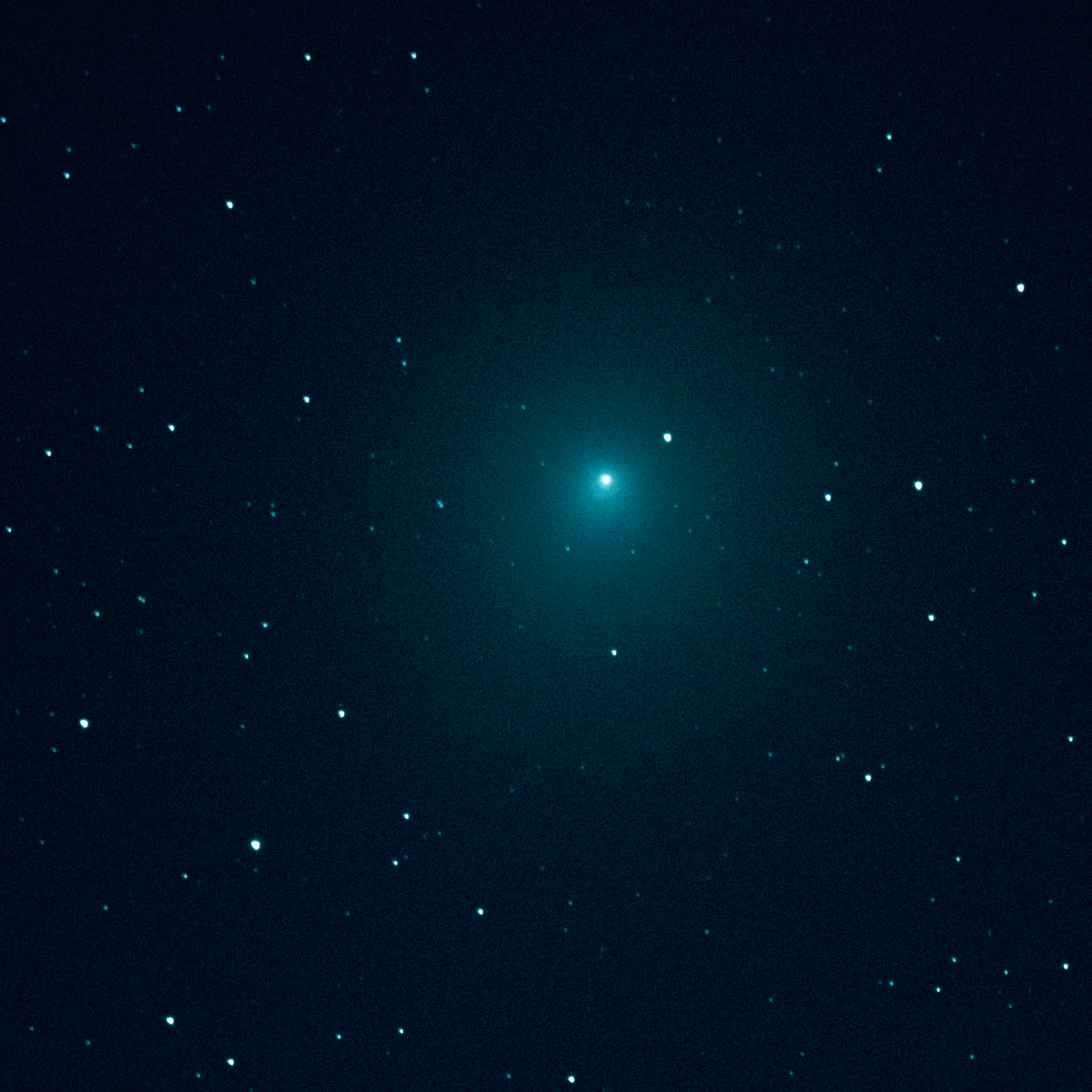Each frame of this short Comet Wirtanen animation is a 30 sec exposure at ISO3200 on a Sony A7R Mk3 full frame camera, mounted at prime focus to an Explore Scientific David Levy Comet Hunter telescope (6" Maksutov-Newtonian telescope with focal length 730mm at F4.9). The frames were manually aligned and converted to a GIF using Photoshop..F