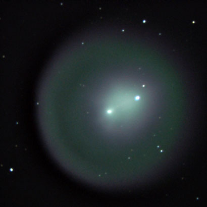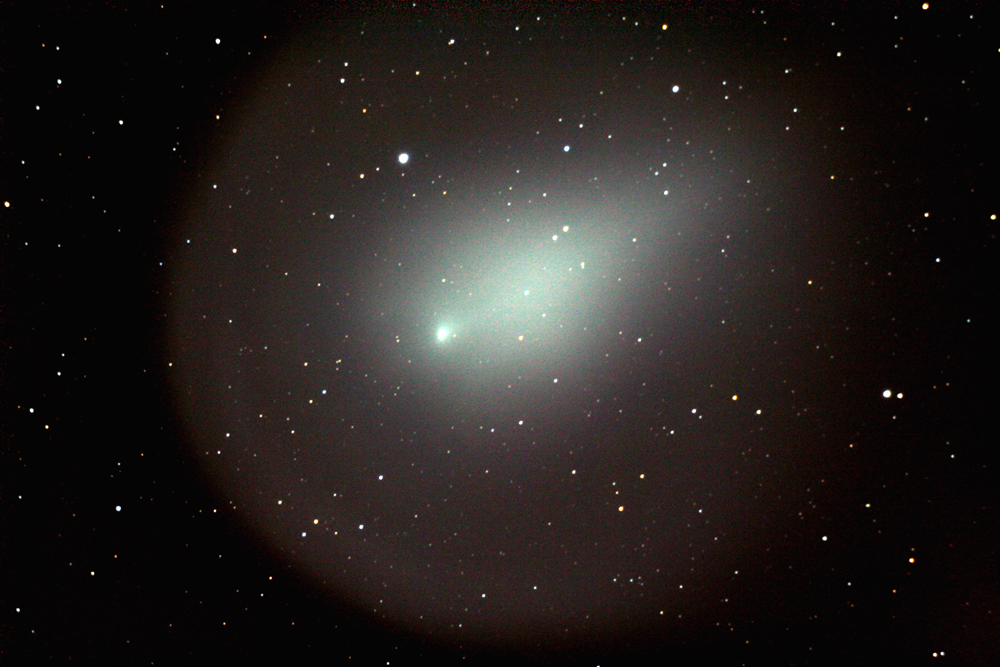 on November 2, 2007, with a C8 telescope and an OLympus digital camera. The comets coma and central core are visible. The solar wind is blowing back to deep space the comet dust as we look almost head on from Earth.