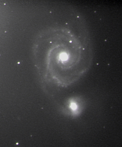 Image of M51 "Whirlpool Galaxy" taken from St. John's, Newfoundland. Photographed by Tim Caruk April 21, 2007 |