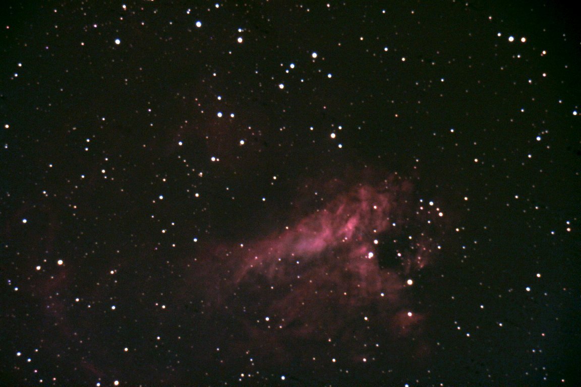 M17 Swan Nebula in Sagittarius (5x30s exposures with 11-inch Celestron CPC-1100 on wedge in SkyShed POD,