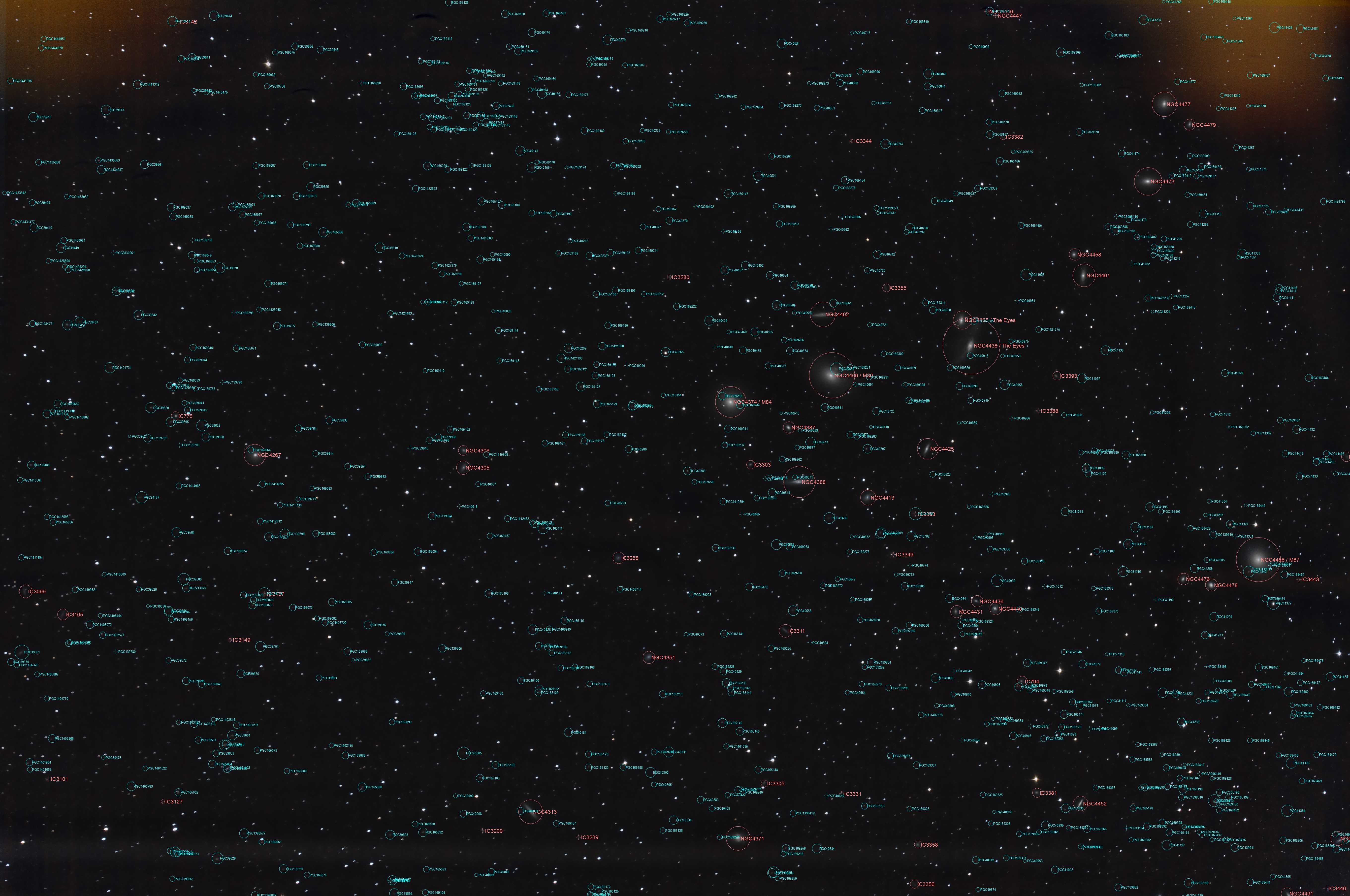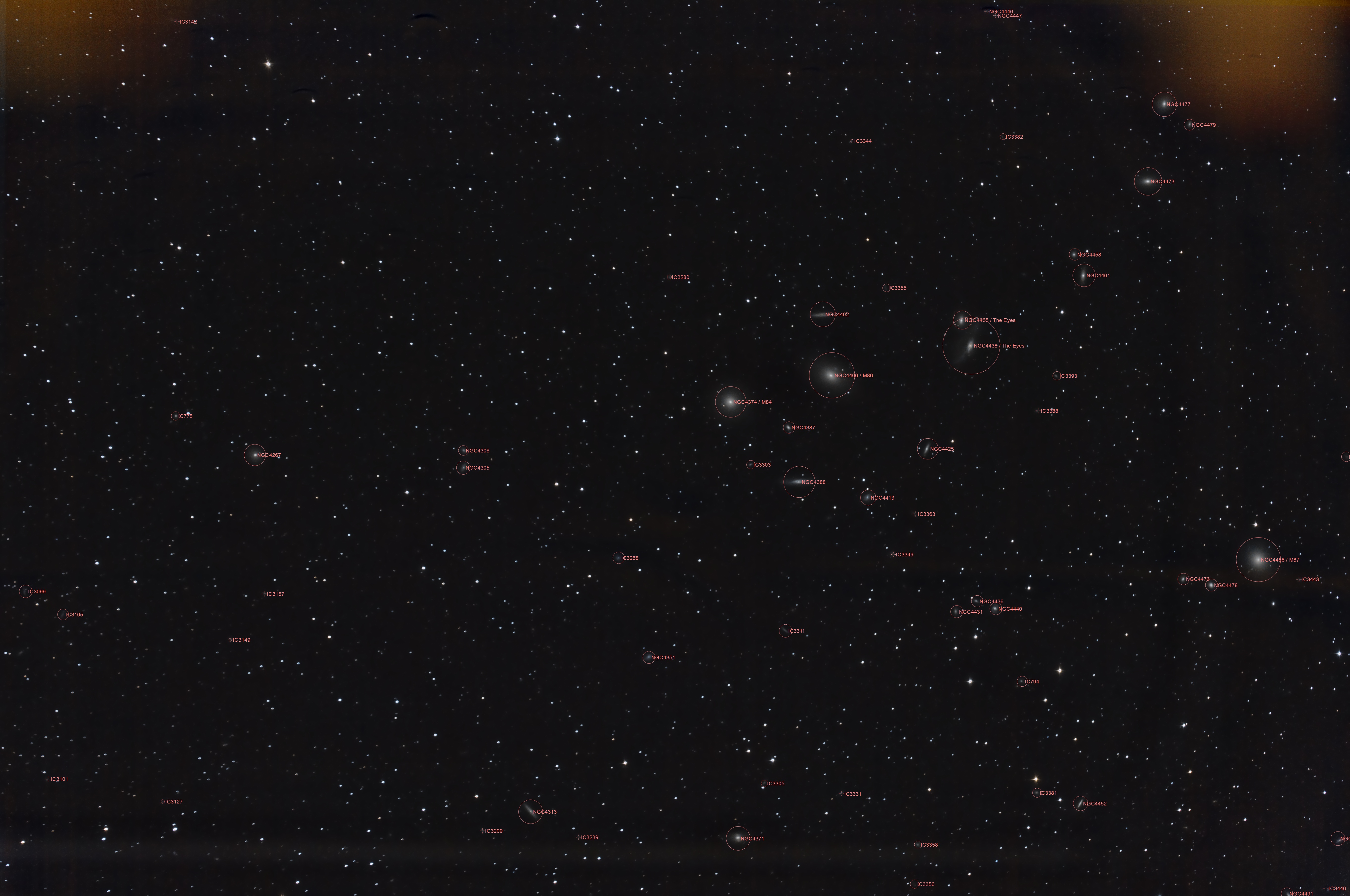 Virgo with PGC annotation. Same image but with PGC level fuzzies