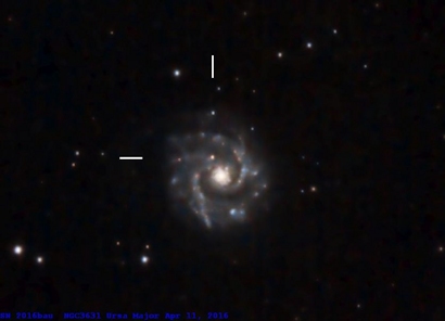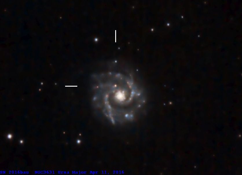 "Supernova 2016bau in galaxy NGC3631", in the constellation Ursa Major, discovered in galaxy NGC3631 on