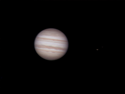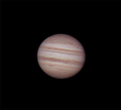 This image of Jupiter was taken at St. John's, on Sept 10, 2009. I obtained this image of Jupiter using an 8 inch Meade SCT and a Canon A 540 digital camera in video mode. Jupiter is now moving away from opposition to Earth.
