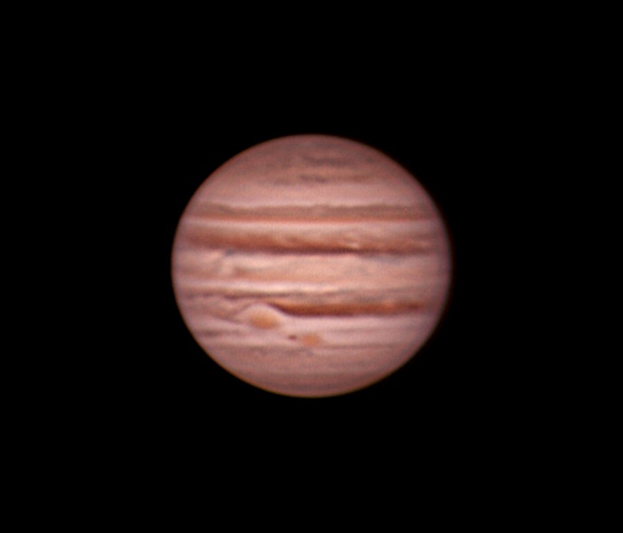 Jupiter as it apperared on the early morning of November 6, 2012. There is a rare appearance of two red spot storms and a third dark spot. The planet will be at oposition to Earth in early Dec. The image was taken with a Neximage 5 through a C9.25 scope.