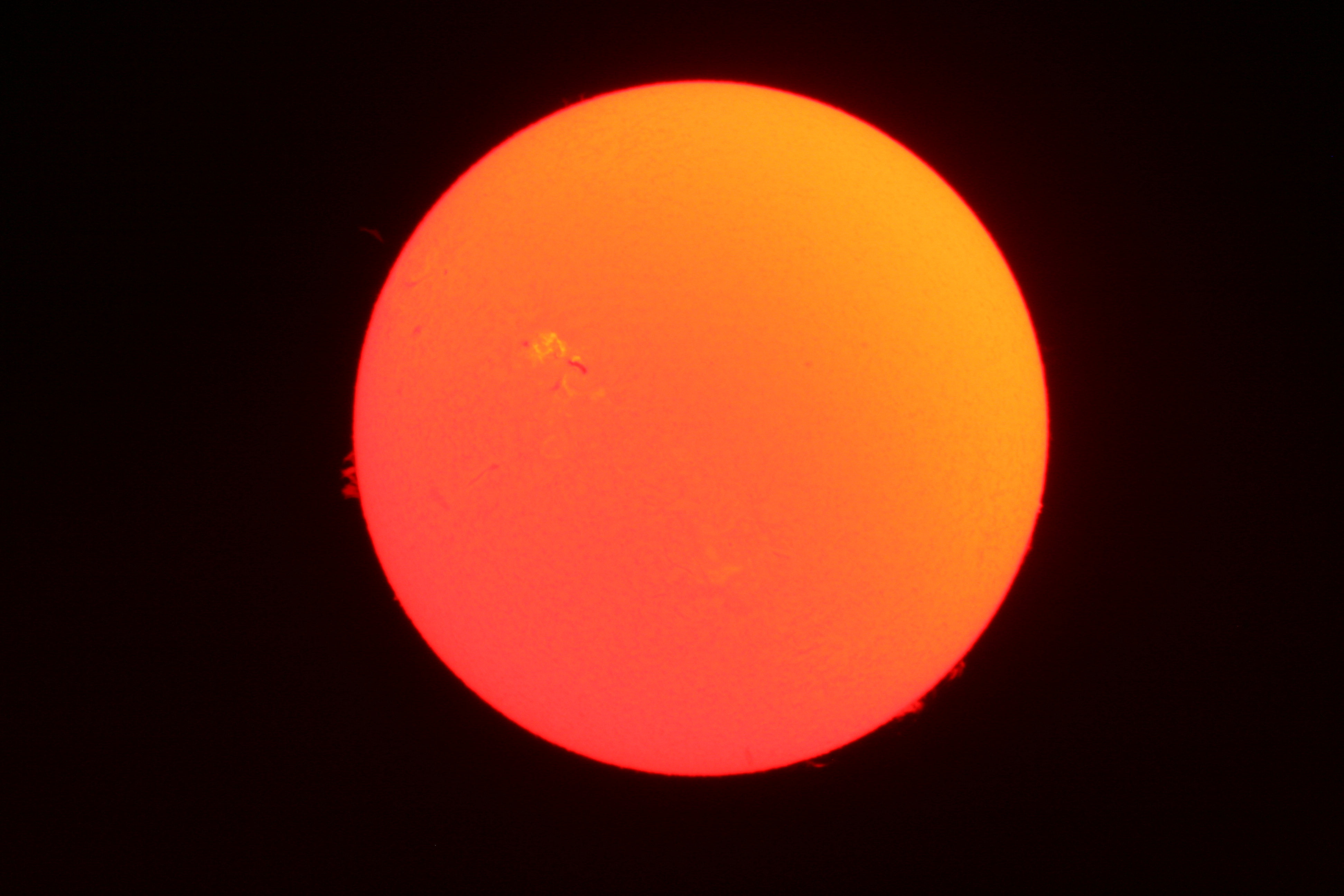 The Sun as photographed September 26th 2011, with the his Lunt 60 Solar Telescope and Canon EOS Digital Rebel XTi camera set at 1/3 sec and ISO 400.